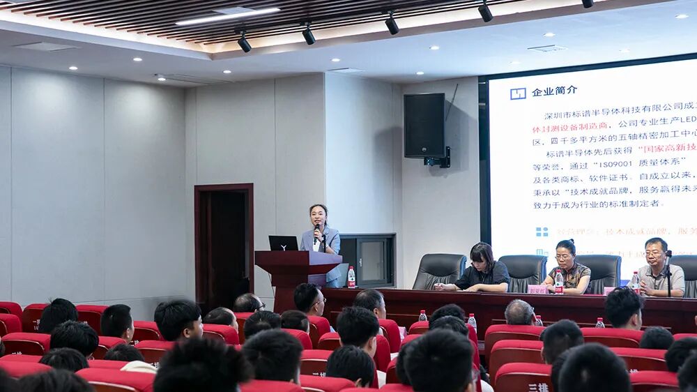 2025世俱杯官网半导体人力资源中心总监杨小红女士,介绍公司基本情况:深圳市2025世俱杯官网半导体科技有限公司,是一家集研发、生产、销售、服务于一体的半导体封测设备制造商。公司专业生产LED、半导体及被动元件封测设备,公司在职员工700余人,拥有近百人的研发团队,专注封测领域近10年,自主研发生产封测设备核心部件,是“国家高新技术企业”,在智能装备制造行业细分领域具有领先地位。